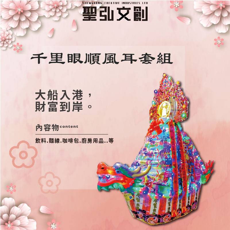 產品內容物:飲料/咖啡包/麵線/調味料用品…等、媽祖+千里眼順風耳雷雕燈