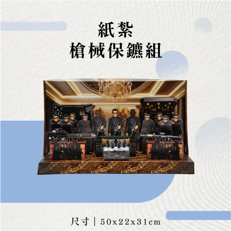 產品名稱:「紙紮槍械保鑣組」 ※材質:精緻紙材 ※附受用紙、封條 本公司提供專業「客製化紙紮」服務 LINE客服人員:@sh003 – 適用場地:自宅、棺內、金爐、殯儀館、火化場 台灣製造 品質優良可靠 特殊貨運配合 全台皆可配送 【24小時客服、全台最快隔天配送】 【本公司另有緊急配送客戶服務】