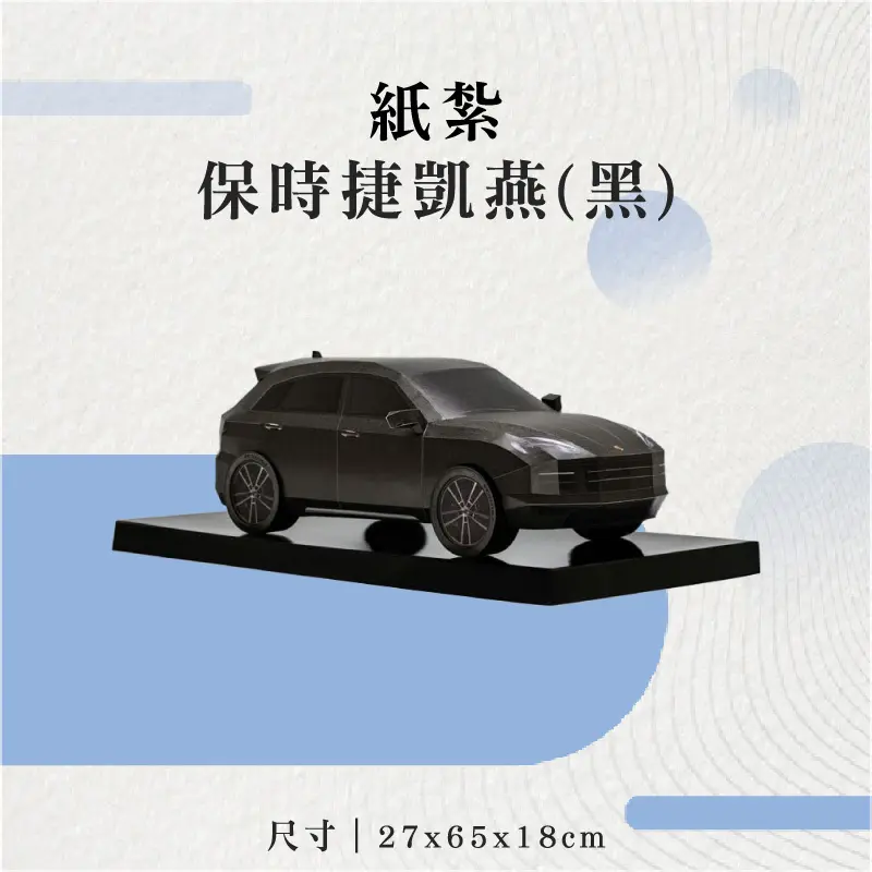 產品名稱:「紙紮保時捷凱燕(黑)」 ※材質:精緻紙材 ※附受用紙、封條 本公司提供專業「客製化紙紮」服務 LINE客服人員:@sh003 – 適用場地:自宅、棺內、金爐、殯儀館、火化場 台灣製造 品質優良可靠 特殊貨運配合 全台皆可配送 【24小時客服、全台最快隔天配送】 【本公司另有緊急配送客戶服務】