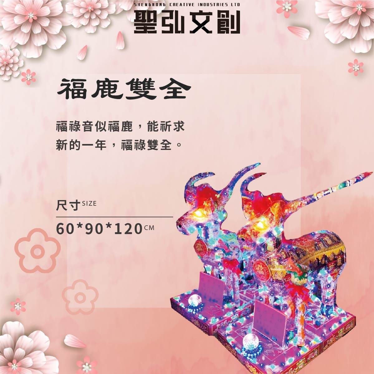 產品名稱:福鹿雙全 產品數量:一對 產品內容物:知名食品 產品特色:福=福氣 祿=錢財,福祿音似福鹿 能祈求新的一年 福祿雙全 產品規格:60*90*120公分 LINE客服人員:@sh003