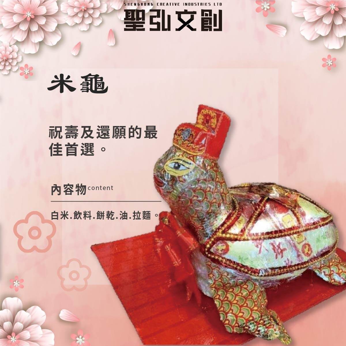 產品名稱:米龜 產品數量:一隻 產品內容物:白米、金墩米 含燈飾及帽子造型財寶燈 產品特色:象徵長壽健康平安、乞龜還願首選 產品規格:客製斤數 祝壽烏龜「所有斤數皆可客製化」 LINE客服人員:@sh003